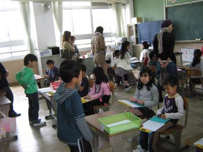 2年生の授業は,自分の見つけた春を発表し合いました。「話す・聞く」の学習です。グループに分かれ,お友達に聞いてもらいます。絵を見せながら,しっかり話すことができていました。保護者の皆さんにも,そばに寄って聞いてもらえました。