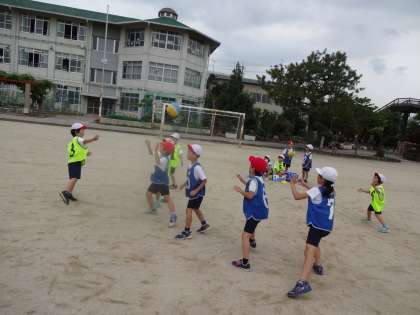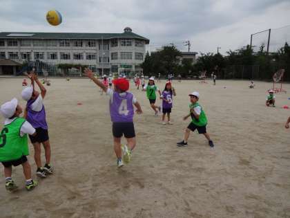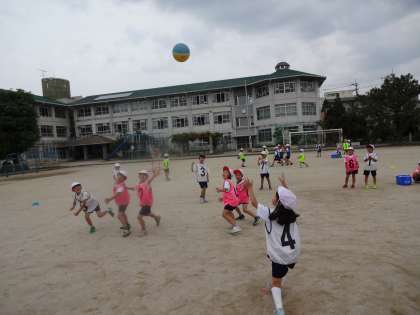 これが最後のパスゲームの試合でした。今までで一番どのチームも動いて,みんながゴールできるようにパスをつなげていました。作戦タイムでは,相手チームに次こそ勝てるようにと話し合い,練習する姿がみられました。追い越せ追いつけのシーソーゲームとなり大変盛り上がりました。