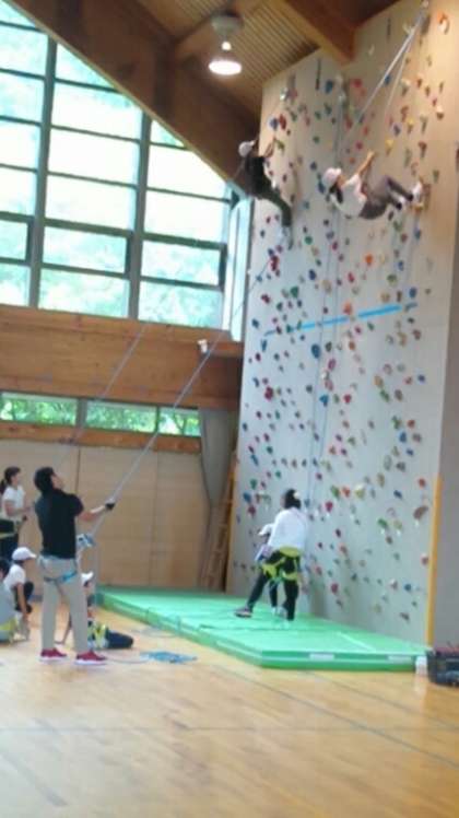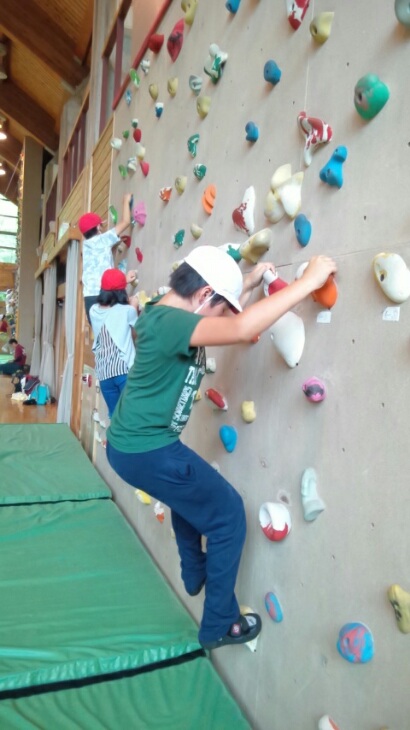 ボルダリングを楽しんでいる写真がさらに届きました。壁を上に上に登るわけですが,体をうまく持ち上げなくてはなりません。スムーズにできる子,苦戦する子,様々だったようです。上に行くのが難しい場合は,横に横に移動することにチャレンジしたようです。