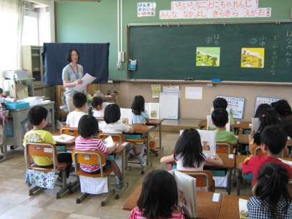 教科書の挿絵を比べながら,暖かい春になって,みんなが野原に出て楽しそうにしている様子をたくさん見つけました。お話の筋をたどりながら,しっかり音読していました。