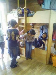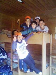 部屋に入ると,自分のベッドを決めます。荷物の整理や布団の準備・・・