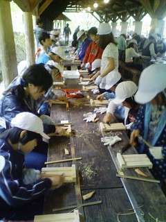 初めて使う小刀で四苦八苦しながらつくりました。器用な子どもは職人顔負けの素晴らしい出来映えでした。
