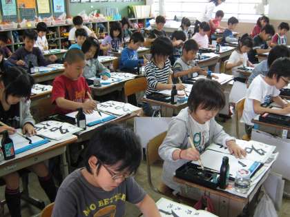 4年生の書写は,3年同様,教育支援の村瀬教諭と担任の協力指導で学習を進めています。