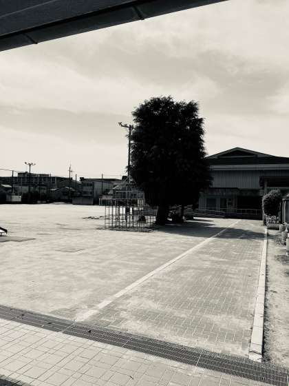 児童玄関から運動場の方を見ると「ジャングルジム」があります。ジャングルジムには色がついているのですが,どんな色がついているのでしょうか?