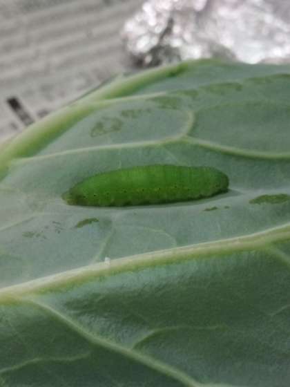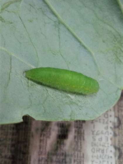 きのう,さつえいした幼虫(ようちゅう)です。大きさは2cmをこえています。