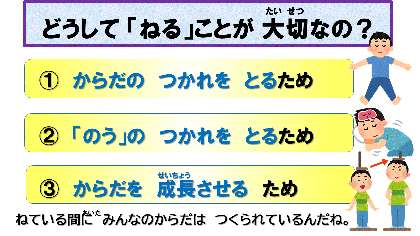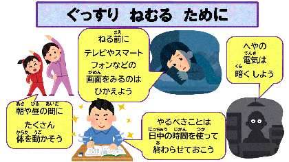 学校が始まってから急に早く寝ようと思っても,なかなか難しいものです。この1週間をかけて,徐々に学校バージョンの生活リズムへと移していきましょう。
