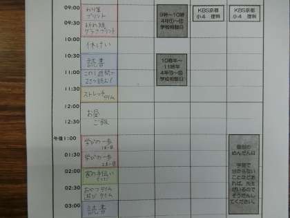 さて,15日に配ったプリントの中に「わたしの一週間 時間割表」