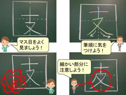 「一画多かった」「長さがちがった」など間違いが見つかるかもしれません。