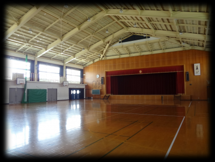 室町小学校の体育館はとても大きくりっぱです。3月には,ここで卒業式が行われ,6年生(現在中学校1年生)が室町小学校を巣立っていきました。そして,4月には,新1年生が入学してきました。あのころは,桜が咲いていましたね。今は,桜が散ってそのあと,青葉が茂ってきました。体育館も,皆さんがやってくるのを待っています。早く会いたいですね。