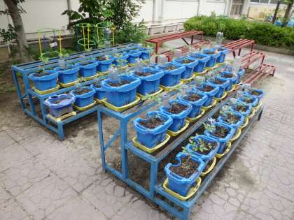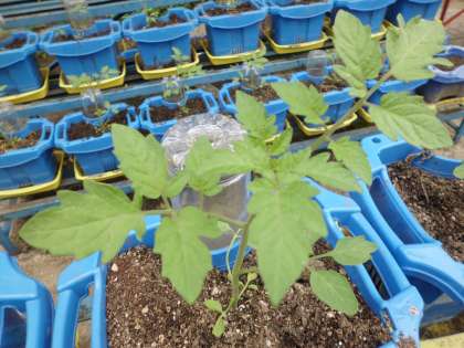 今日もミニトマトがげんきにそだっていました。よるに雨がふったのですこし土がしめっていましたが,水をやりました。大きくなるのがたのしみです。