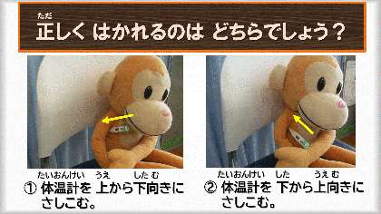 さて,わきで体温を測る時の正しい測り方はどちらか分かりましたか?