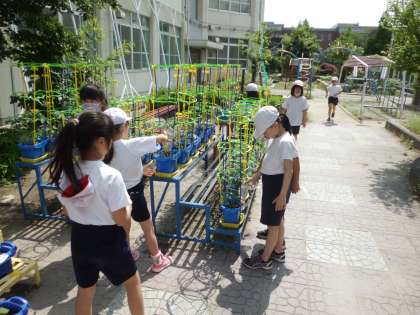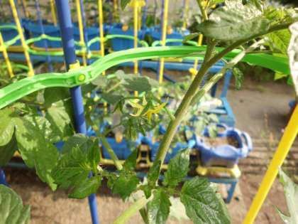 いくつかのミニトマトに,花がさきました!とってもきれいで,かわいらしいです!学校にきたら,目をこらしてかくにんしてみてね!