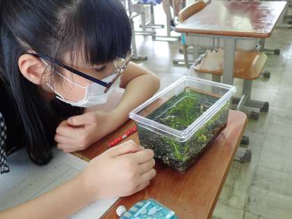 5年生の理科の学習で,メダカの観察をしました。