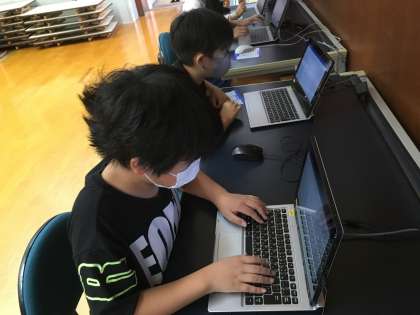 上の写真はパソコンの使い方を学び,文章を打っている子どもたちの様子です。