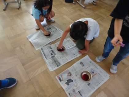 色水を作りました。和紙に色水をつけていろいろな模様ができて