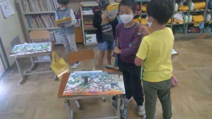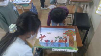 改めて,自分の作品や友だちの作品のよさや工夫を文字にして書いたのは,今回が初めてでした。友だちにお手紙で伝えるようにどこがどんな風にすてきなのかを伝えてあげようとじっくり作品をみたり,話を聞いたりしていました。