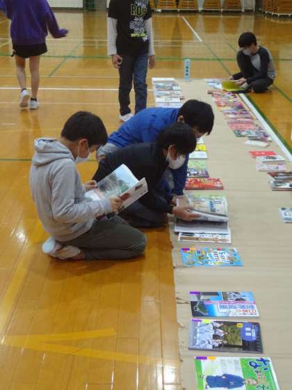 新しい本は,とても魅力的で,子どもたちは本の世界に入り込んでいます。一人で読んでいる子もいれば,数人で1冊の本をのぞき込んでいる子たちもいます。なかなか選べない子もいますが,ゆっくりと本に触れることができたのではないでしょうか。