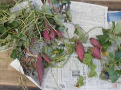 1年生の花壇に植えた,さつまいもを掘りました。