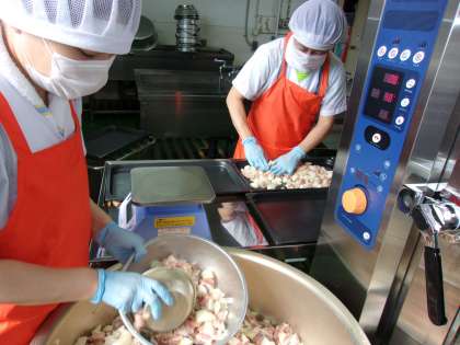 今日は,初めての献立「鶏肉のゆず塩焼き」をスツームコンベクションオーブンを使って作りました。