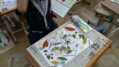 図画工作科「身近な自然の色・形」の学習で「葉っぱコレクション」を作りました。