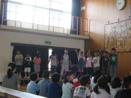 ステージだけでなくフロアーを使った演出は,元気な3年生にぴったりでした。