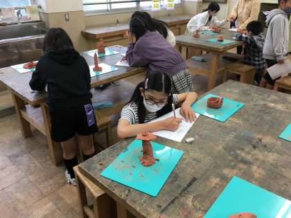 図画工作科「立ち上がれ!ねん土」の鑑賞会の様子です。