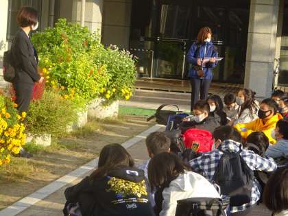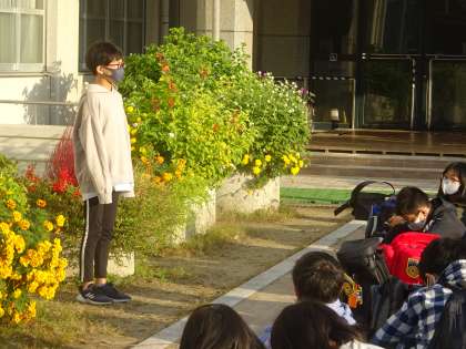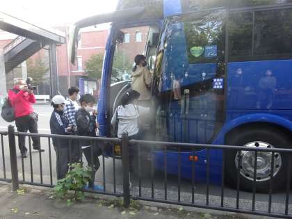 7時30分,出発式を済ませた6年生が修学旅行に出発しました。早朝での集合で,少し眠そうでしたが,みんな心の中でワクワクしている様子が見えました。