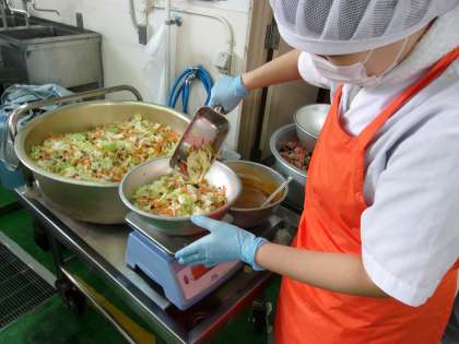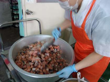 給食室で,スチームコンベクションオーブンを使って「さけのちゃんちゃん焼き」を作りました。初めての献立なので,どんな風に仕上がるのか給食調理員さんはドキドキ,子どもたちはワクワクしていたようです。