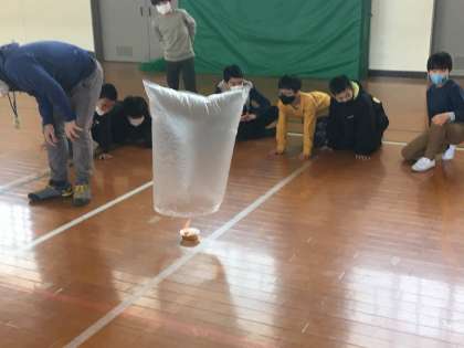 この学習の最後には,空気を温めることで熱気球を飛ばす実験をしました。