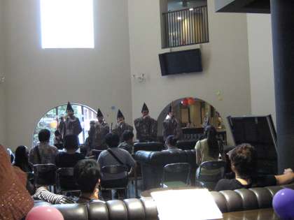 受付の後ろでは,雅楽の演奏が行われています。「雅楽会」は,伝統あるサークルですが,夏まつりに参加するのは初めてだそうです。