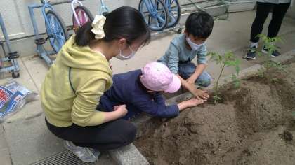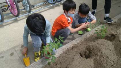 生活単元学習で,トマトの苗を植えました。子どもたちは,4本のトマトの苗をとても大事そうに植え,たっぷりと水をやりました。大空学級の畑は,大空学級の窓の目の前にあります。毎日しっかり観察して,すくすく育っていって欲しいと思います。