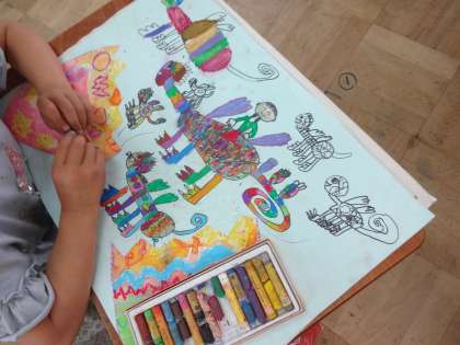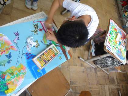 生きものが出てきたり,乗り物が出てきたりと子どもたちが想像を広げて