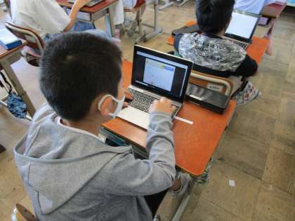 きらきらGIGA学習の日の様子を見てみると,1年生はまだまだパソコン操作に不慣れな様子ですが,一生懸命パソコンに向き合っていました。