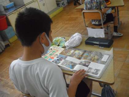 また,各学級で「読書絵はがき」をかく取り組みも行っています。登場人物や,本を紹介したい相手に向けて,絵はがきの形式でメッセージやイラストをかきます。