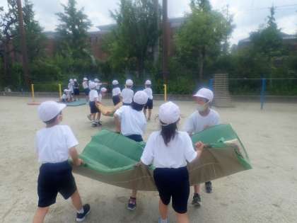 また,安全のためにグループに分かれて,マットを協力して運びます。