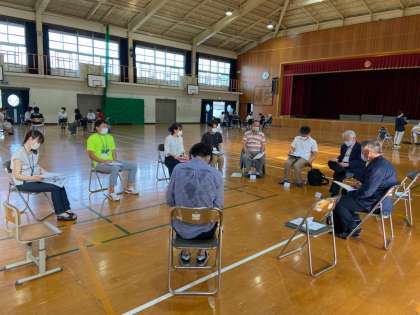 暑い中でしたが,顔合せをし,共通の話題で語り合うことができて有意義な会となりました。これから,いろいろな場面で,学校と保護者と地域が協働活動を進めていけたら,子どもの学びや育ちを支えることができると思います。