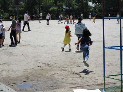 晴天の中,なかよし遊びが行われました。