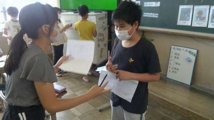 の尋ね方にも慣れてきて,ペアを見つけてはどんどん会話を楽しんでいました。