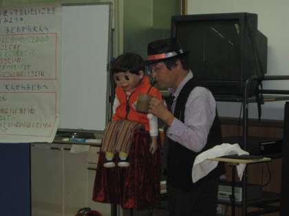 圧巻は,コーヒーを飲みながらの腹話術です。