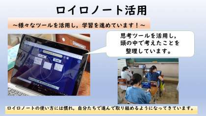4月から積極的に,GIGA端末を活用してきたこともあり,6年生では,スムーズに端末へのログイン,ロイロノートの活用がスムーズに行えるようになりました。