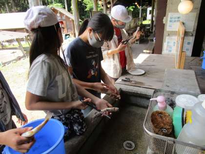 おがま池で捕まえた「いわな」を第1炊事場でさばきました。