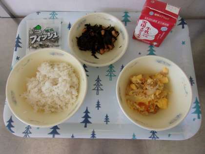 「ふわっ,ふわっの卵がおいしいよ。」「ごはんにのせて,食べたいな。」と子どもたち。「今日は丼の献立じゃないから,ごはんにかけないでね。ごはんとあげたま煮をそれぞれを味わって食べましょう。」と声をかけると,少し残念そうな顔をした子どももいましたが,完食できました。