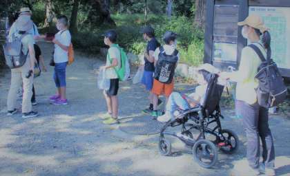 大空学級では,生活単元学習で「自然について調べよう」の学習を行っています。10月15日(金)には,講師に佐野修治先生を招いて,京都御苑のキノコ・植物・昆虫などの虫・野鳥などの自然の様子を観察しに行きました。子どもたちは,「あっ!こんなところにキノコが生えているよ!」「あっ!ピカピカのどんぐりがたくさんあるよ!」と言って,大変意欲的に京都御苑の自然について調べました。これからも,季節の変化を感じながら,色々な自然に触れ合いたいと思います。