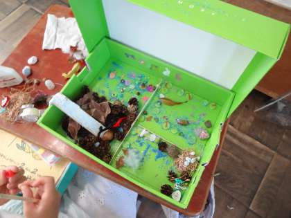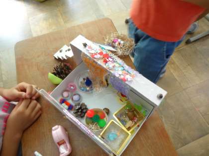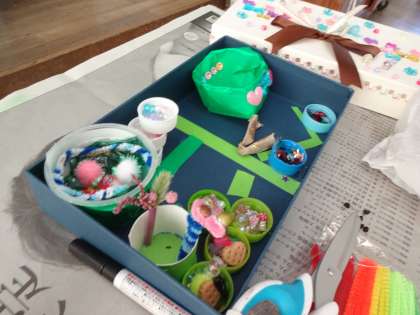 飾って並べたり,箱を宝箱のように作り替えたりしました。