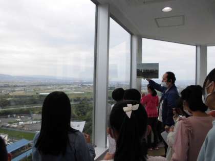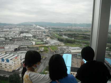 「さすてな京都」には展望台もあり,「京都タワー」,「エコランド音羽の杜」や「伏見桃山城」の位置を確かめたりしました。京都を一望でき,とても良い機会となりました!