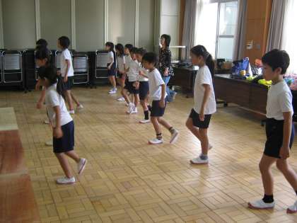 音楽に合わせて,リズミカルに踊ります。