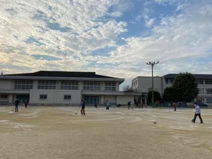 2学期終業の日でもあるので,子ども達が帰った後,凍結防止剤を散布しました。