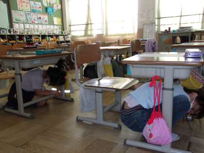 本日,子どもたちに予告なしのシェイクアウト訓練を行いました。