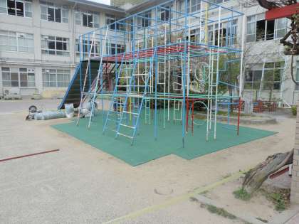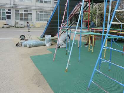 遊具使用時の安全性を高めるため,総合遊具の下にマットを敷きました。