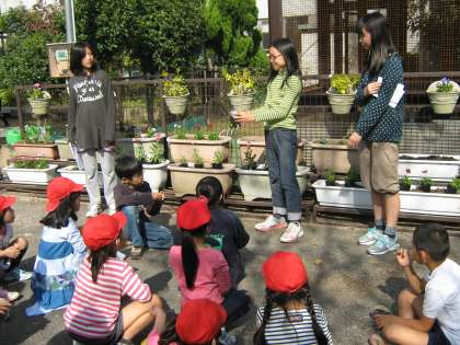 園芸委員会の6年生が,ポットから出す方法や植え方を教えてくれました。